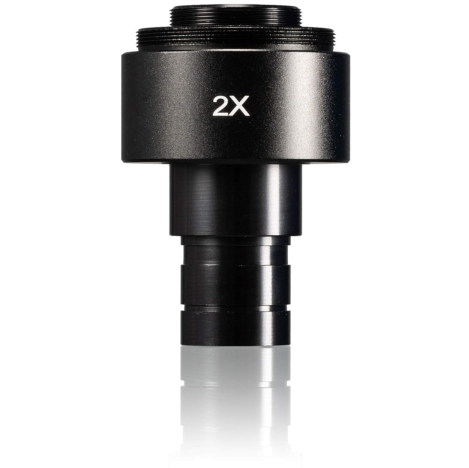 Der BRESSER SLR-Kameraadapter 2x T2 dient als Adapter zwischen einem Mikroskop und einer Spiegelreflex- oder Systemkamera. Für den Betrieb wird ein kameraspezifischer T2-Ring benötigt.