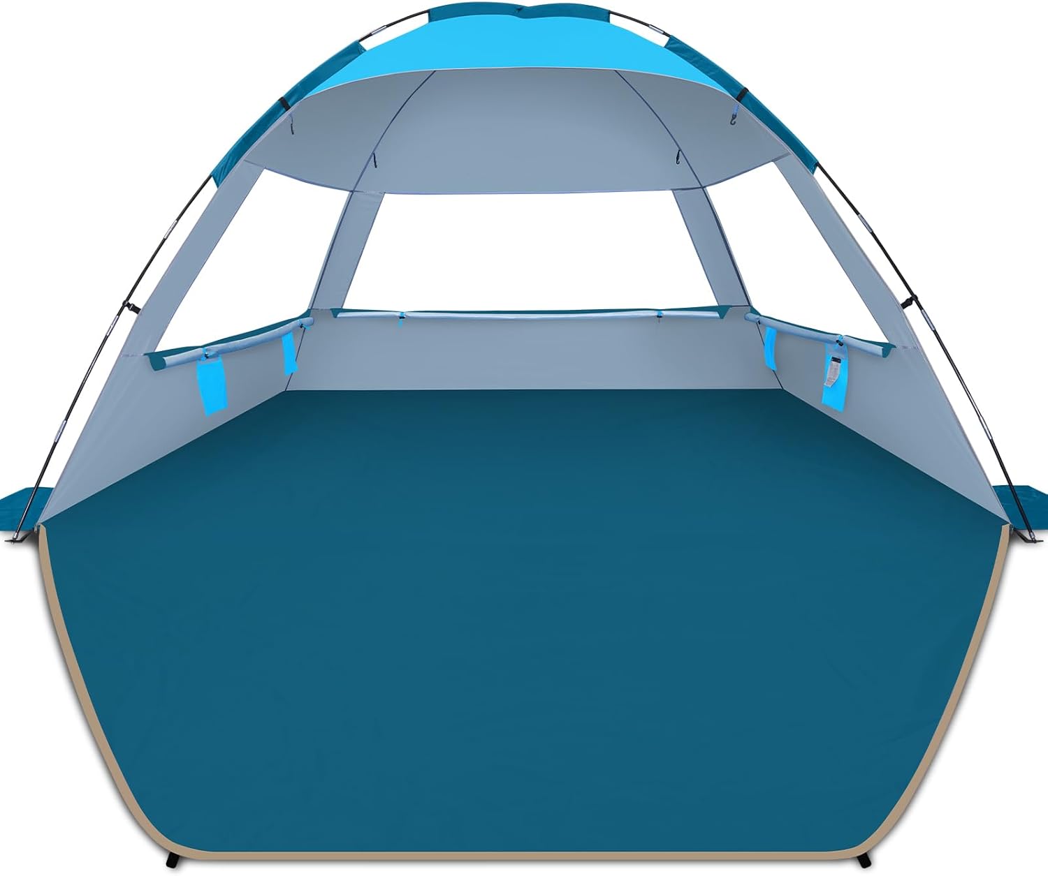 - Super stabil und langlebig: Der neue Fiberglasrahmen mit 8,0 mm dicken Stangen ist sicherer, langlebiger und rostfreier, unterstützt das Zelt, um selbstständig zu stehen und seine Form nach längerem Gebrauch zu behalten. Das Zelt ist mit 3 Sandsäcken und 4 Heringen ausgestattet, um Stabilität zu gewährleisten und zu verhindern, dass es vom Wind weggeweht wird