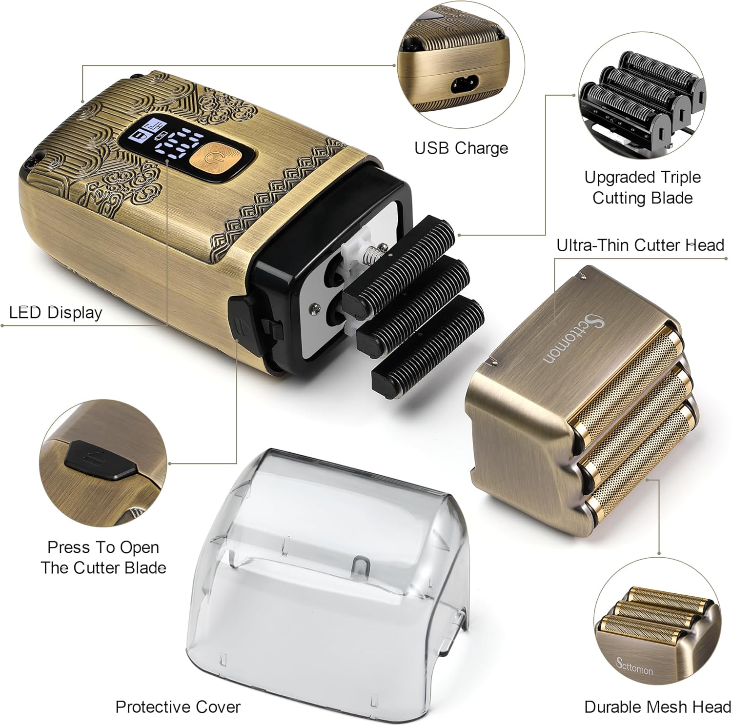 Haarschneider für Herren T-Klinge und elektrischer Rasiermesser-Barttrimmer, Herren-Schönheitspflegeset mit drei Teilen, kabellos