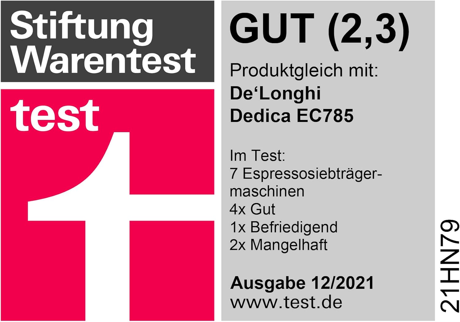 De'Longhi Dedica Style EC 685.B – Espresso Siebträgermaschine, Espressomaschine mit professionellem Milchaufschäumer, nur 15 cm breit, für Kaffeepulver oder ESE Pads, 1 l Wassertank, schwarz