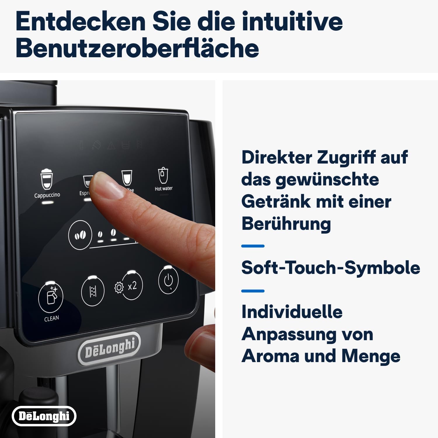 De'Longhi Magnifica Start ECAM222.60.BG, Kaffeevollautomat mit LatteCrema-Milchsystem für Automatischen Cappuccino, 4-Direktwahl-Tasten, Soft-Touch-Bedienfeld, "x2"-Funktion, 1450W, Schwarz/Grau
