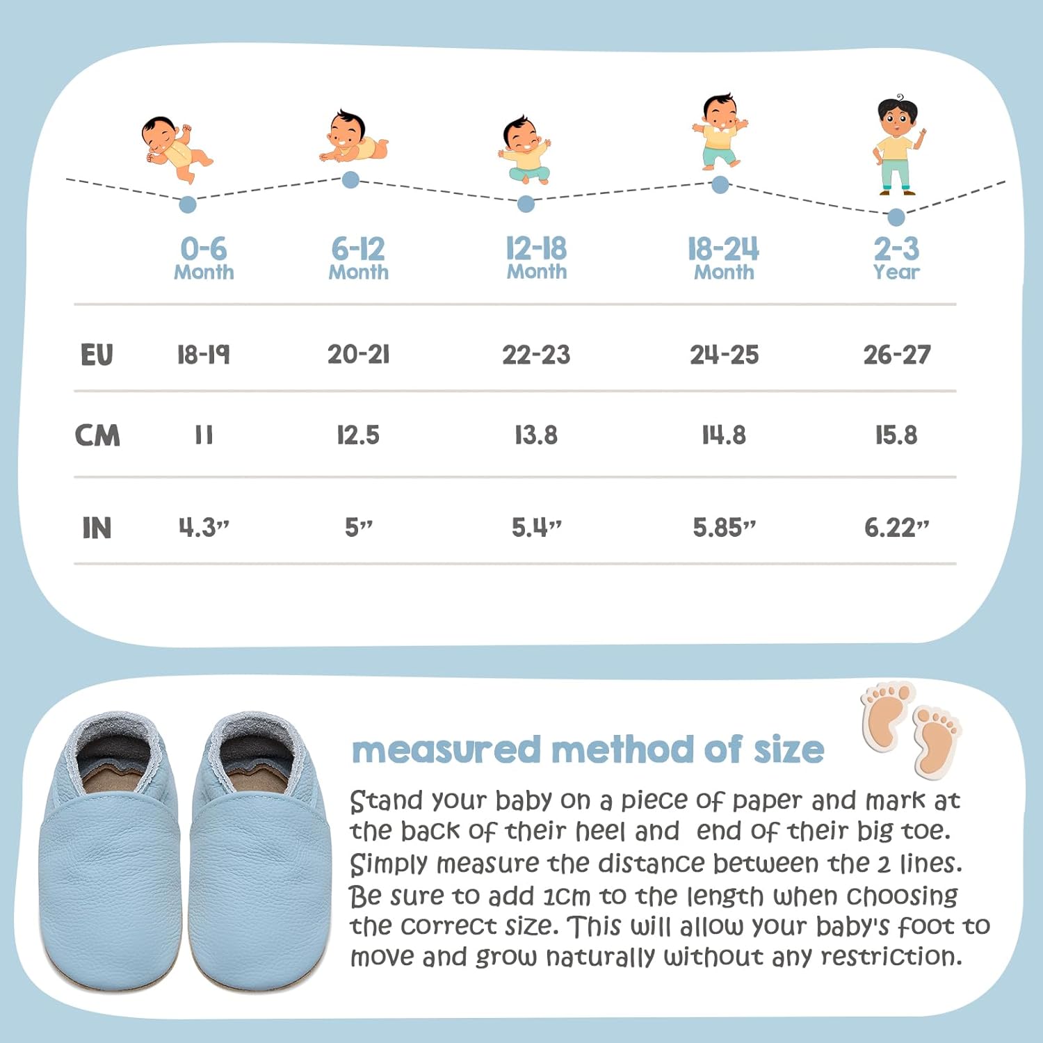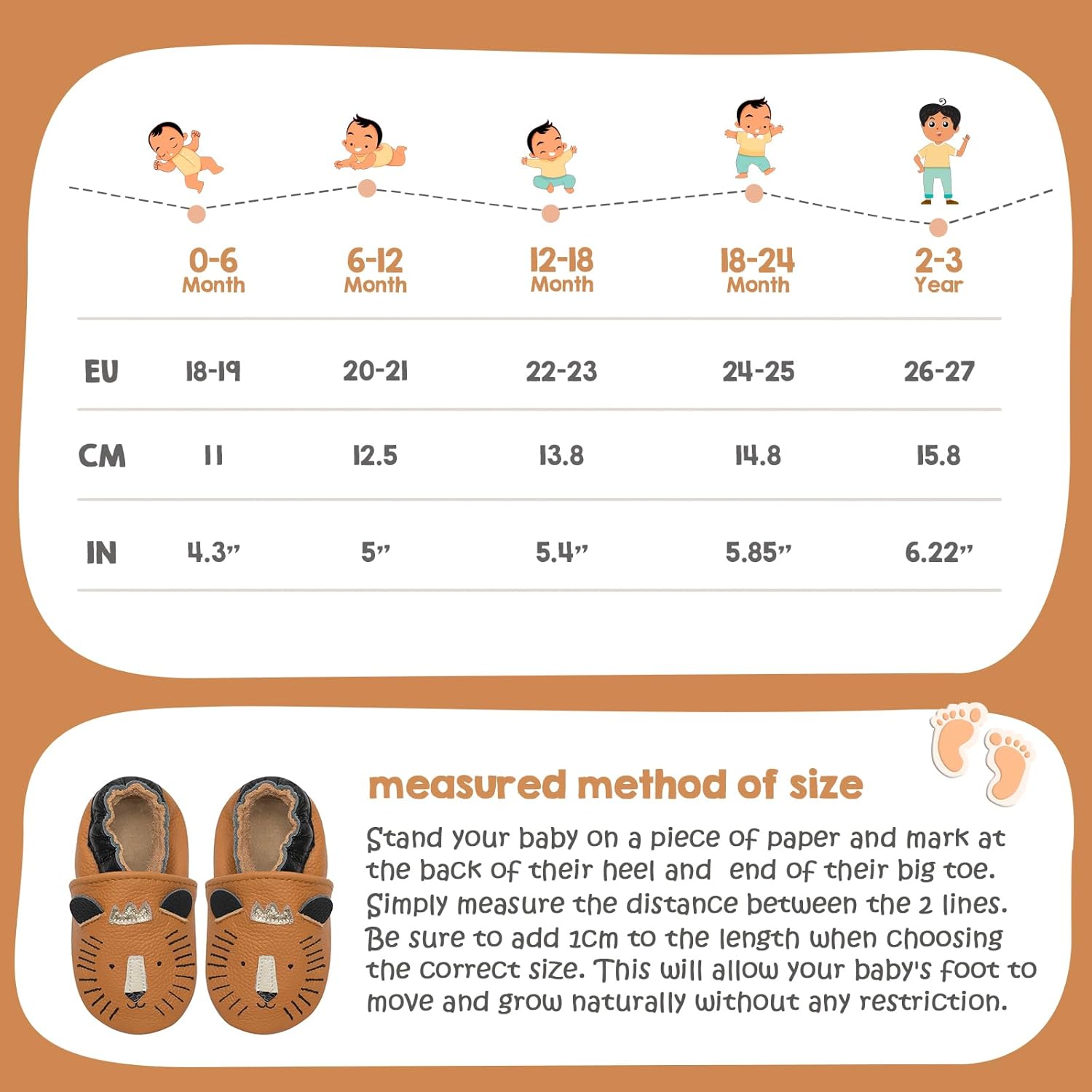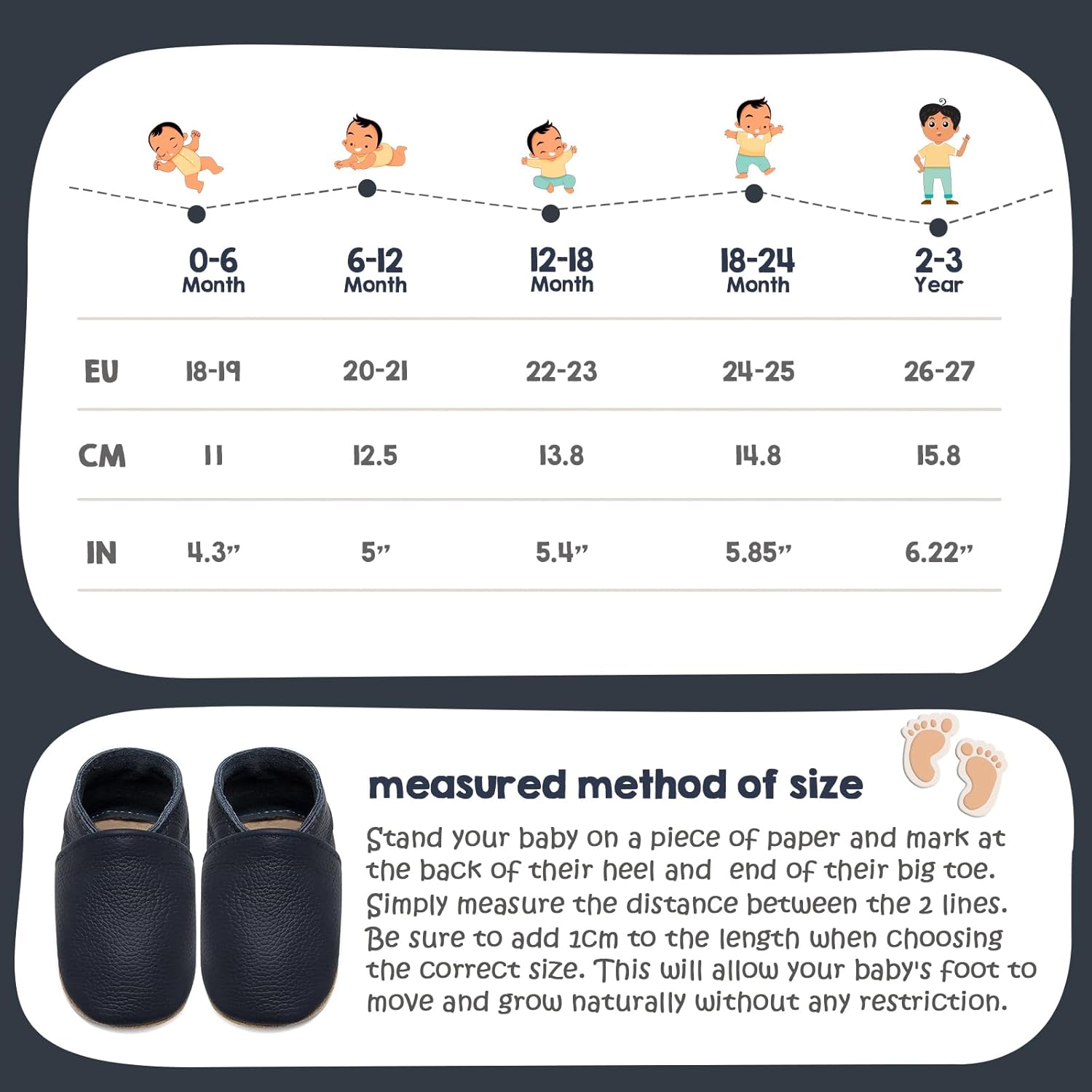 - Die Sohle der Baby Lauflernschuhe besteht aus weichem Wildleder, das leicht und flexibel ist, so dass die Füße des Babys besser passen und die Berührung des Bodens fühlen und dem Baby ein "barfuß-Gehen"Erlebnis gebe