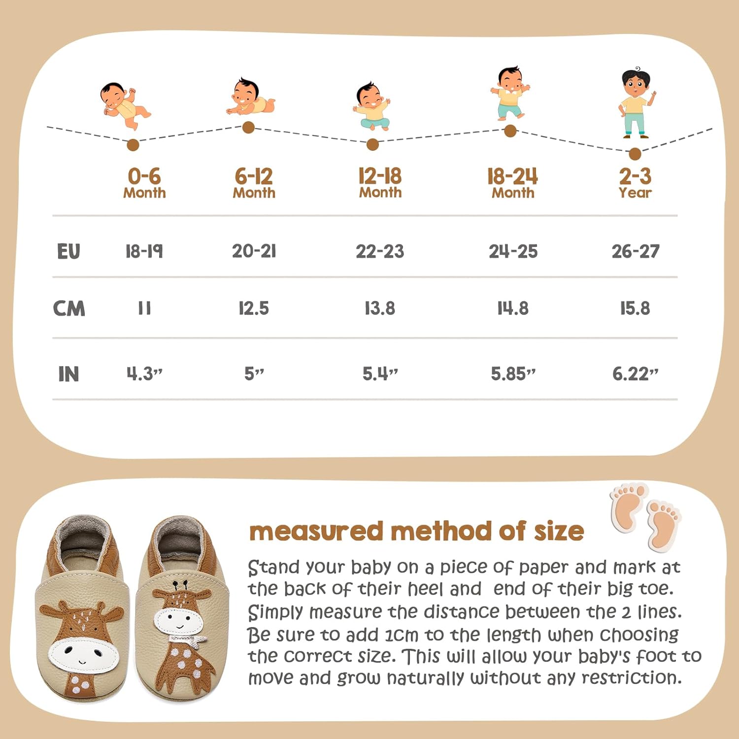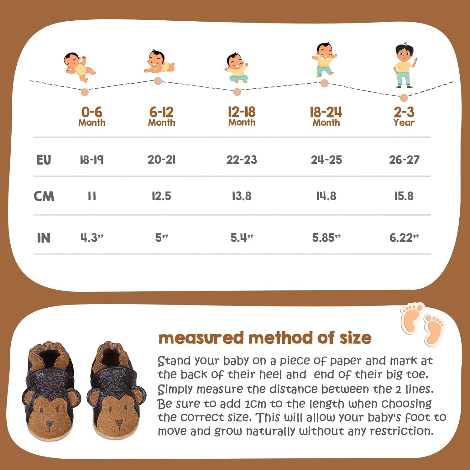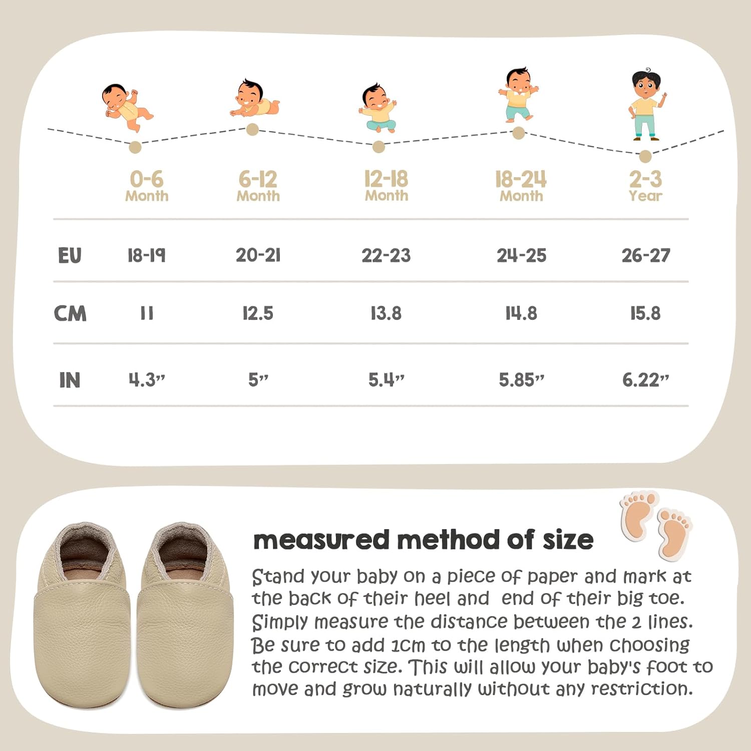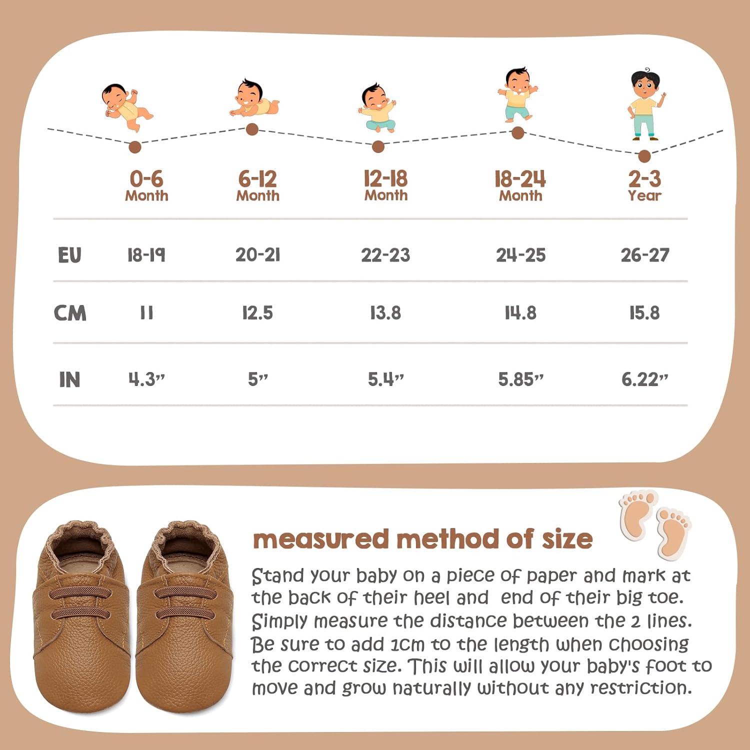 - Die Sohle der Baby Lauflernschuhe besteht aus weichem Wildleder, das leicht und flexibel ist, so dass die Füße des Babys besser passen und die Berührung des Bodens fühlen und dem Baby ein "barfuß-Gehen"Erlebnis gebe