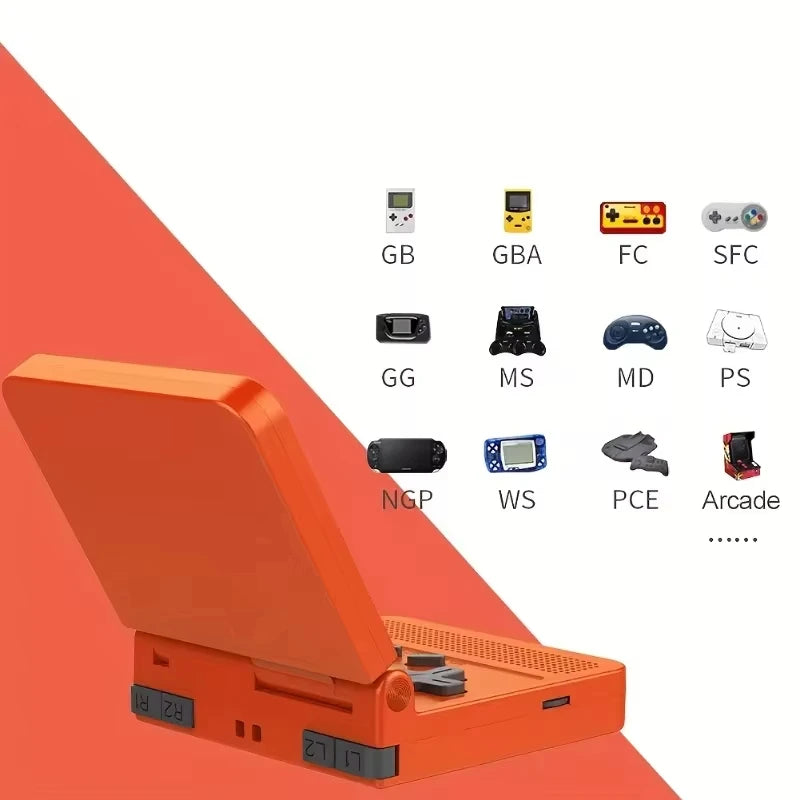 POWKIDDY v90 Schwarze Version 3-Zoll-IPS-Bildschirm Flip-Handheld-Konsole Open System-Spielkonsole 16 Simulatoren PS1 Kindergeschenke