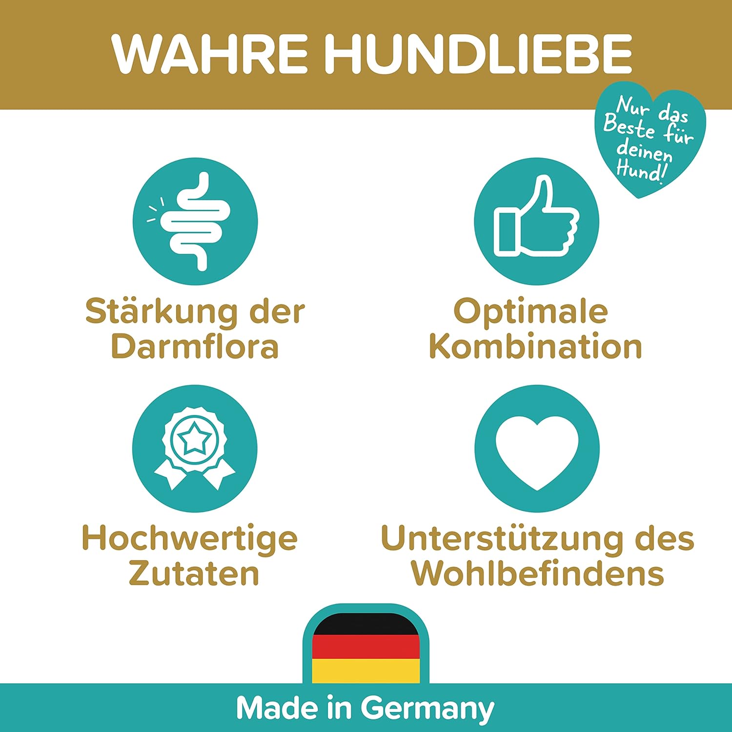 - ✅ HUNDELIEBE - MADE IN GERMANY: Unser Probiotikum & Präbiotikum wird unter höchsten Qualitätsstandards und mit den besten Zutaten in Deutschland hergestellt. Wir lieben unsere (& Ihre) Fellnasen und wollen ein "happy dog life" für sie, weshalb für uns ohne Ausnahme nur die Premium-Lösung in Frage kommt!
