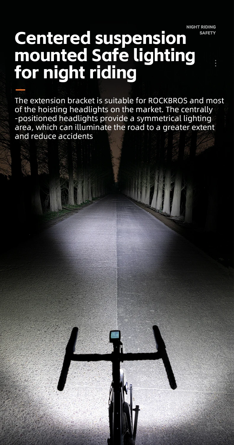 O suporte de extensão é adequado para ROCKBROS e a maioria dos faróis de elevação do mercado.Os faróis posicionados centralmente fornecem uma área de iluminação simétrica, que pode iluminar a estrada em maior medida e reduzir acidentes