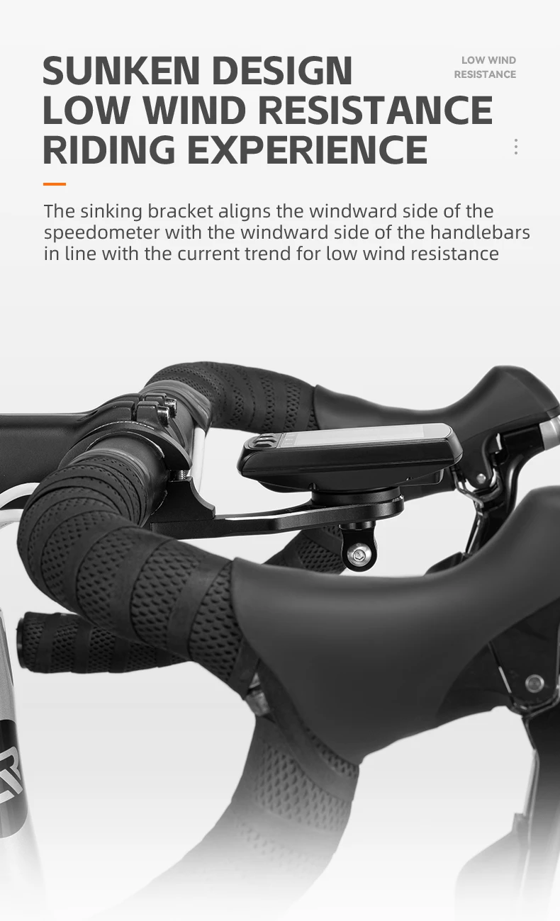 O suporte de afundamento alinha o lado do vento do velocímetro com o lado do vento do guidão de acordo com a tendência atual para baixa resistência ao vento