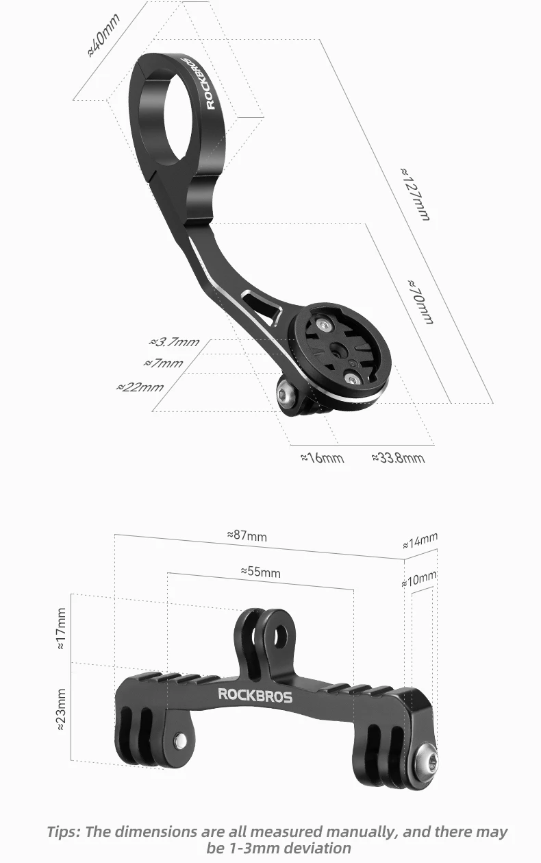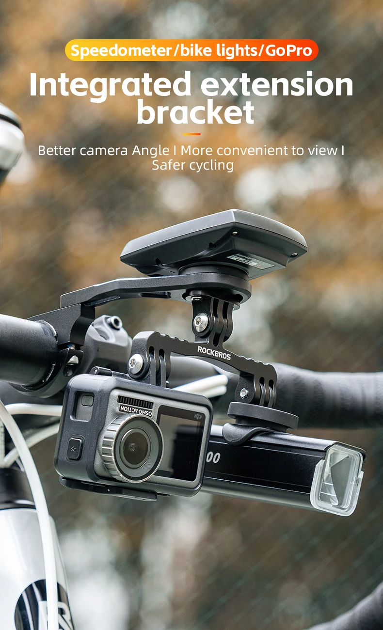 ROCKBROS Fahrradcomputer-Halterung mit Licht- und GPS-Halterung – Fahrradhalterung für GoPro – Halter für Bryton, iGS, Garmin Computer – Fahrrad-Zubehör