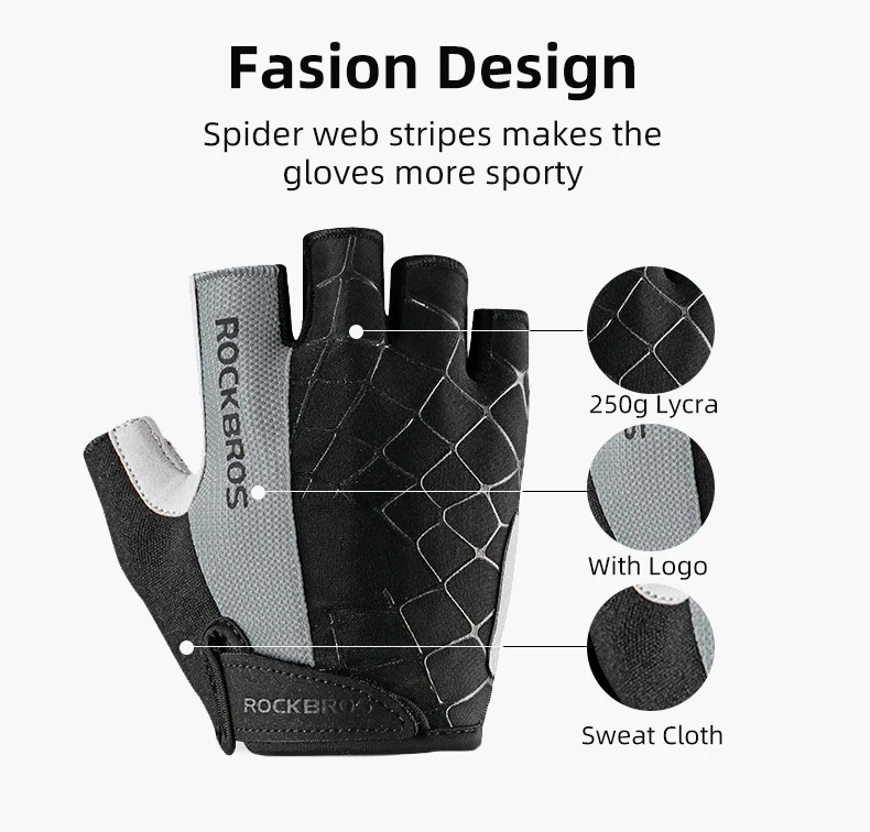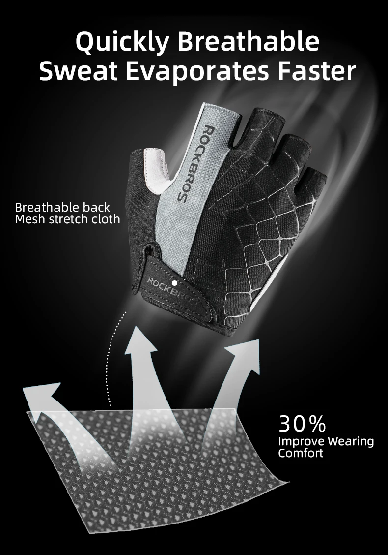 ROCKBROS Fahrradhandschuhe Halb-Finger Stoßfest Atmungsaktiv MTB Mountainbike Sporthandschuhe für Herren und Damen Kurze Handschuhe