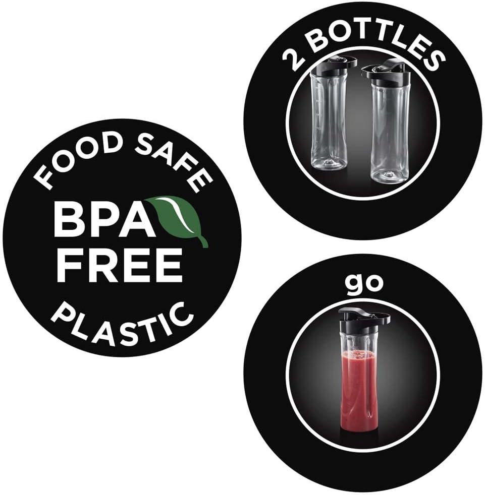 - Zwei spülmaschinengeeignete Kunststoffbehälter mit Deckel und Trinköffnung; Dank Trinkverschluss sind Smoothies auch unterwegs genießbar