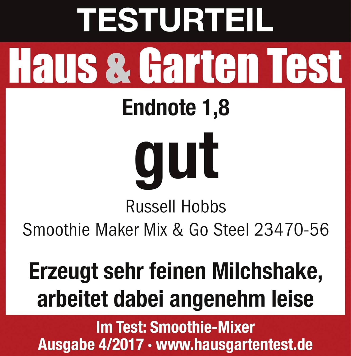 Russell Hobbs Mixer - Standmixer & Smoothie Maker to go [23.500 U/min Power-Motor] inkl. 2x Mixbehälter 600ml (BPA-frei, spülmaschinen- & bruchfest inkl. Deckel) Zerkleinerer, Edelstahl, 23470-56