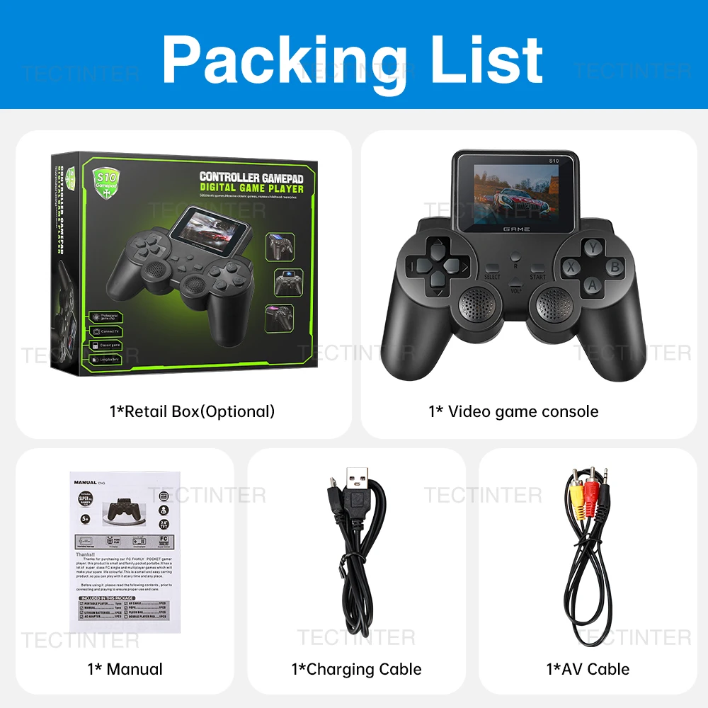 S10 Videospielkonsole Eingebauter Retro-Handheld-Game-Player mit 520 Spielen 2,4-Zoll-Spiel AV-Ausgang tragbarer Videoplayer