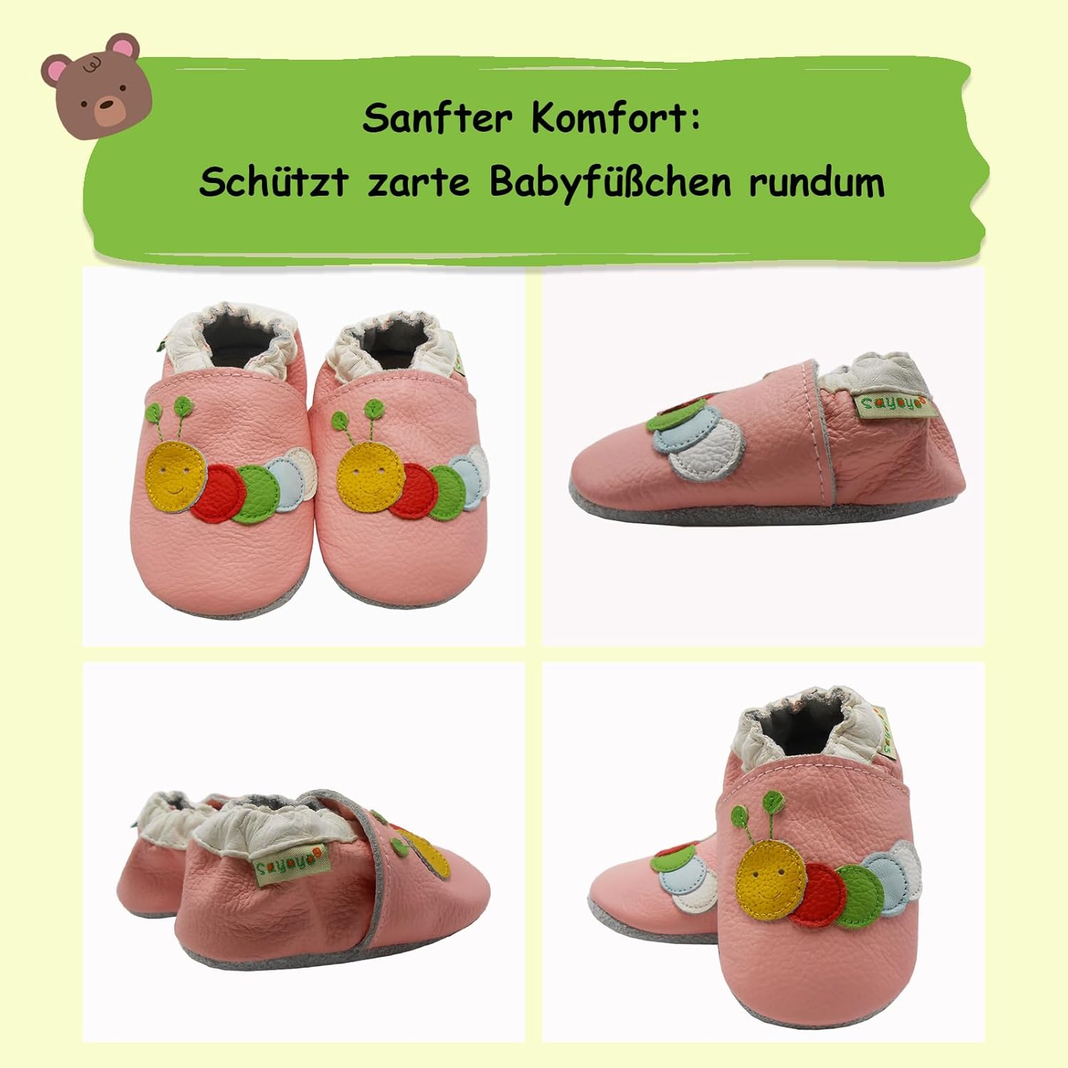 - Sayoyo Krabbelschuhe 'äwerden mit 100% echtes Leder in der liebvollen Handarbeit von uns geschnitten und fertig genäht. Das Leder ist völlig frei von schädlichen Chemikalien. Das Leder entspricht den EU-Standards, atmungsaktiv und weich.