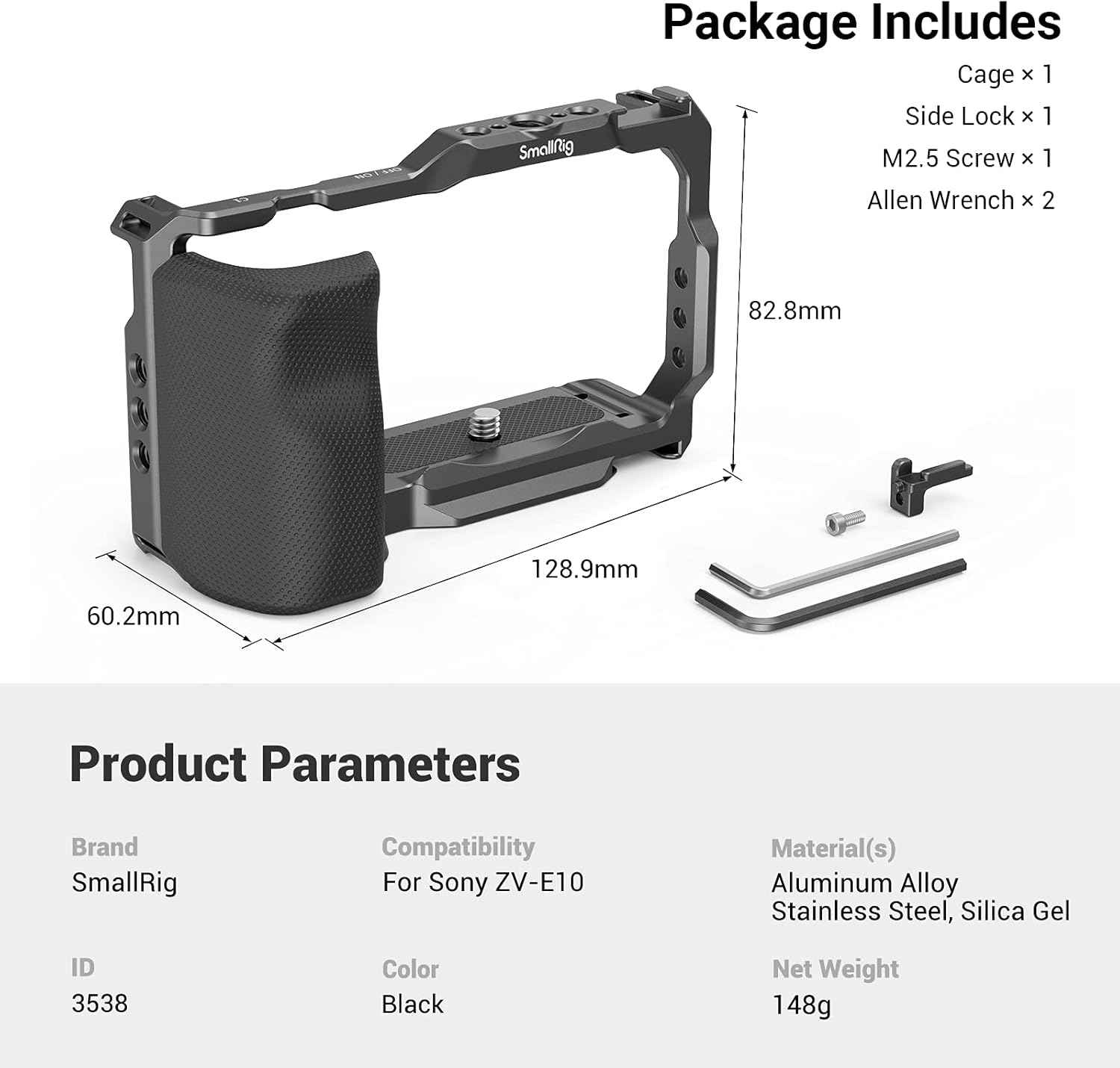SMALLRIG ZV-E10 Cage with Handle and Integrated Quick Release Plate for AR-ca Swiss, Cage with Handle for Sony ZV-E10 - 3538