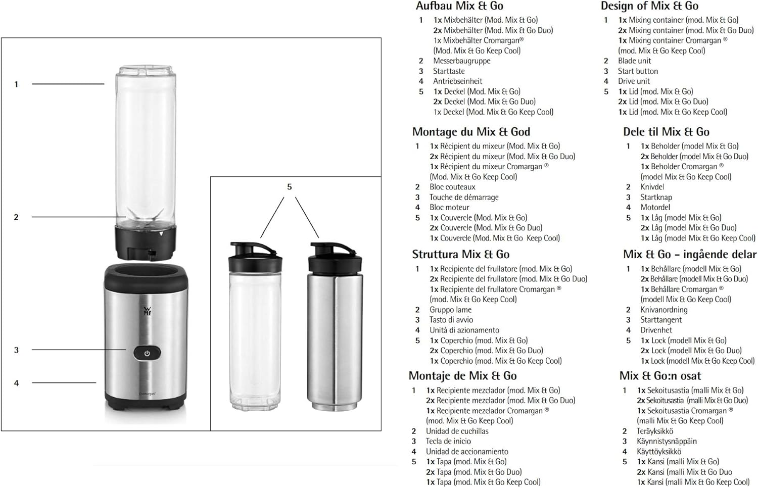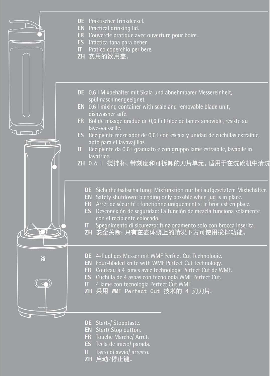 • Der dichte Mixbehälter mit praktischem To-Go-Trinkdeckel hat eine Skala und ist aus BPA-freien TRITAN-Kunststoff. Alle abnehmbaren Teile sind spülmaschinenfest