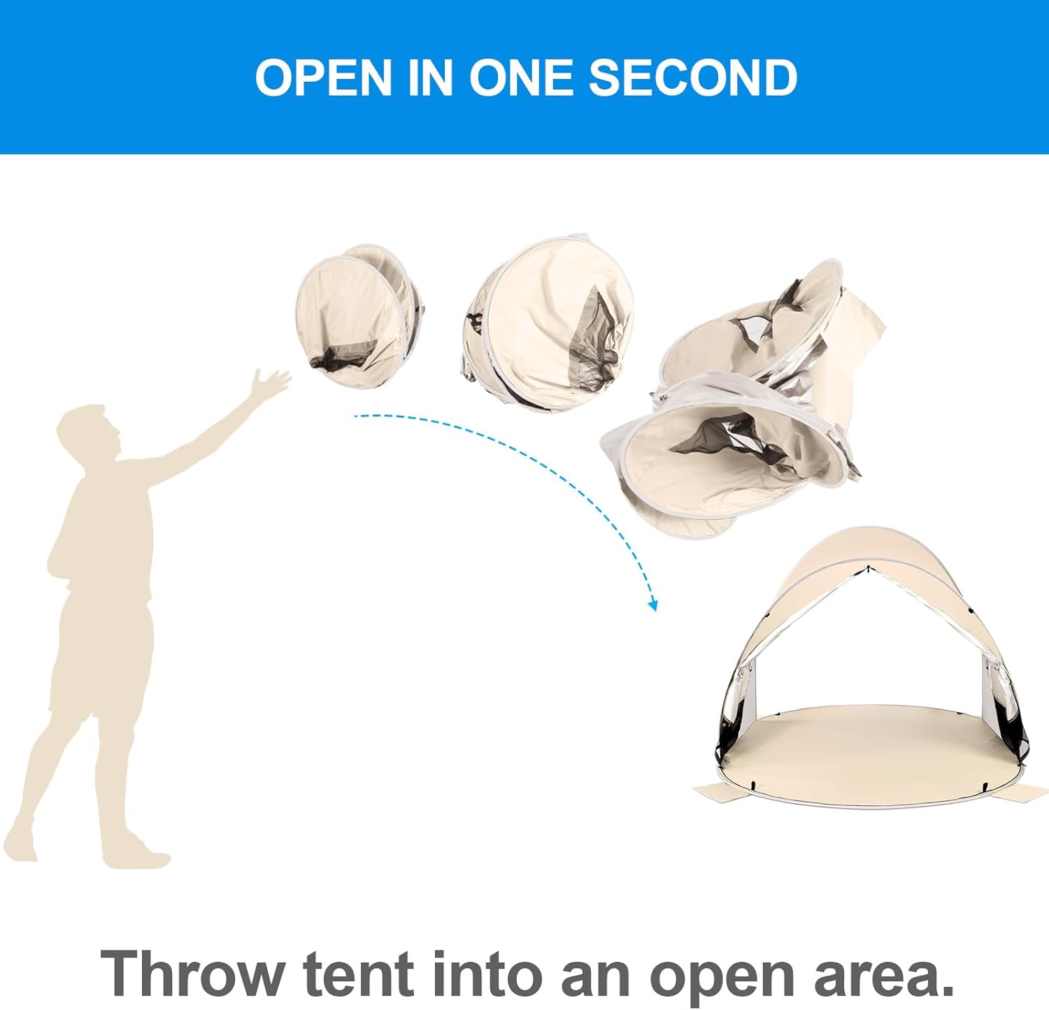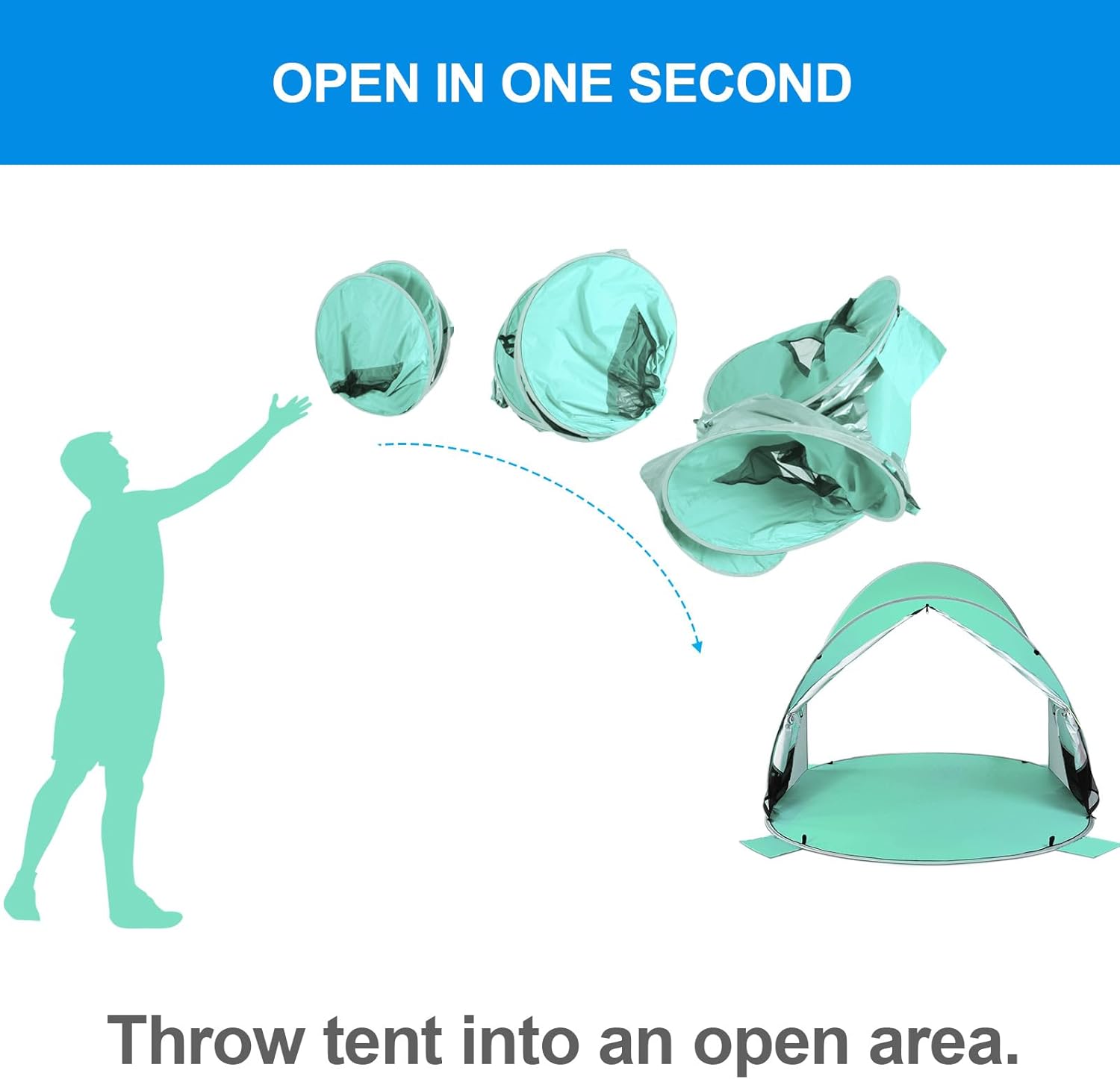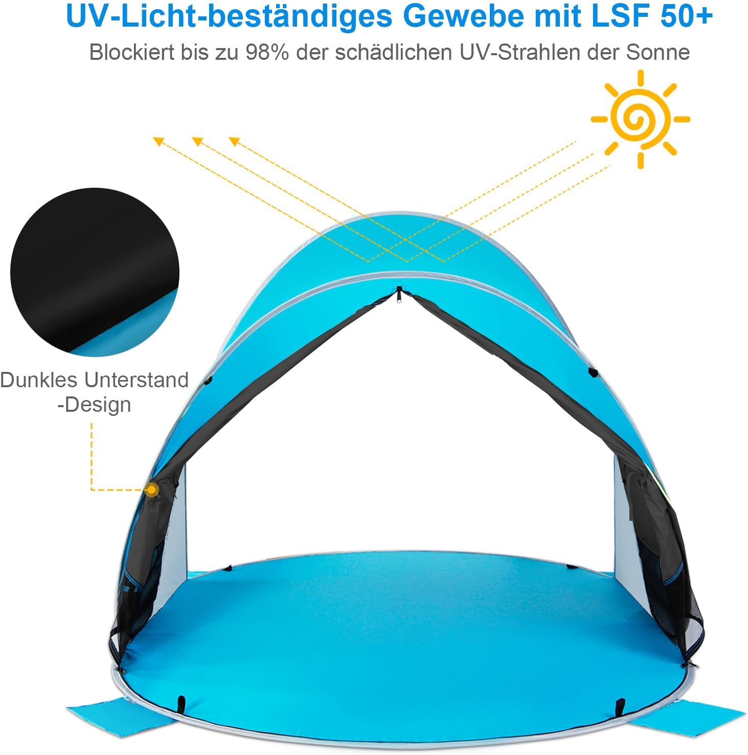 - LSF 50+ & Wasserabweisend: Das wasserabweisende Polyester mit versiegelten Nähten hält den Innenraum trocken und die silberbeschichtete Zeltoberfläche reflektiert und absorbiert das Sonnenlicht, um bis zu 98% der schädlichen ultravioletten Strahlen der Sonne zu blockieren und den Benutzer vor UV-Strahlen zu schützen.